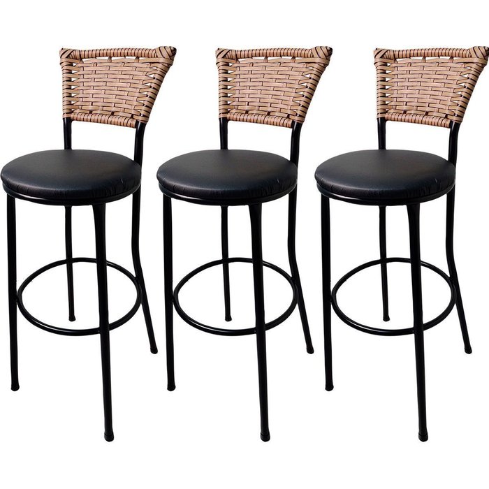 Kit 3 Banquetas Bistrô Hawaii Fendi Assento Preto Fendi