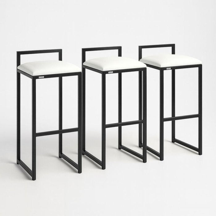Kit 3 Banquetas Corino Ferro Cozinha Balcão Alta Bistro Branco Branco