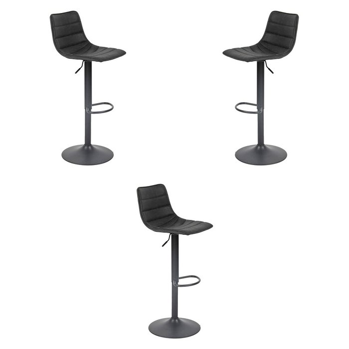 Kit 3 Banquetas Decorativas Travis Pu com Regulagem de Altura Base Disco C/apoio para Os Pés Preto G Preto