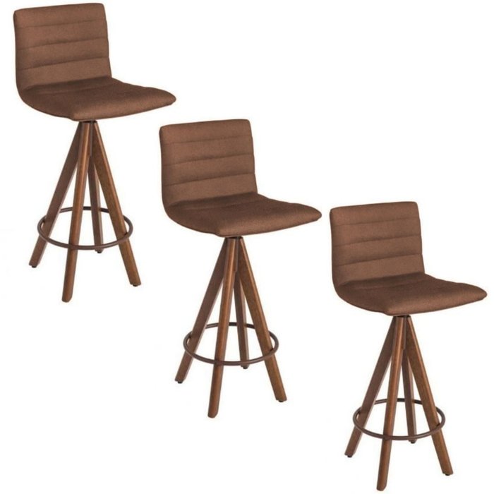 Kit 3 banquetas gourmet giratoria Julia-Assento Marrom
