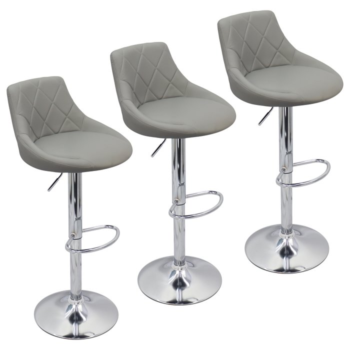Kit 3 Banquetas Milano Carmel Estofada Giratória C/ Regulagem - Cinza