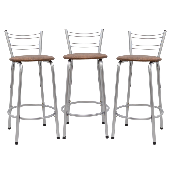 Kit 3 Banquetas para Balcão Flórida Prata 60cm Cozinha Gourmet Bistrô Bancada Piscina Área de Lazer Assento Marrom Claro