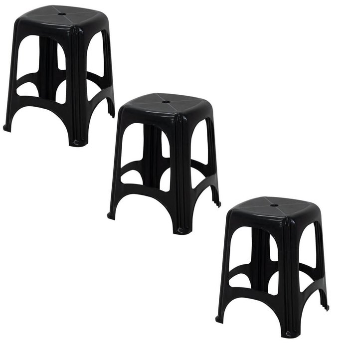 Kit 3 Banquetas Tramontina Preta Plástico Niterói ECO Banco Empilhável Compacto Portátil preto