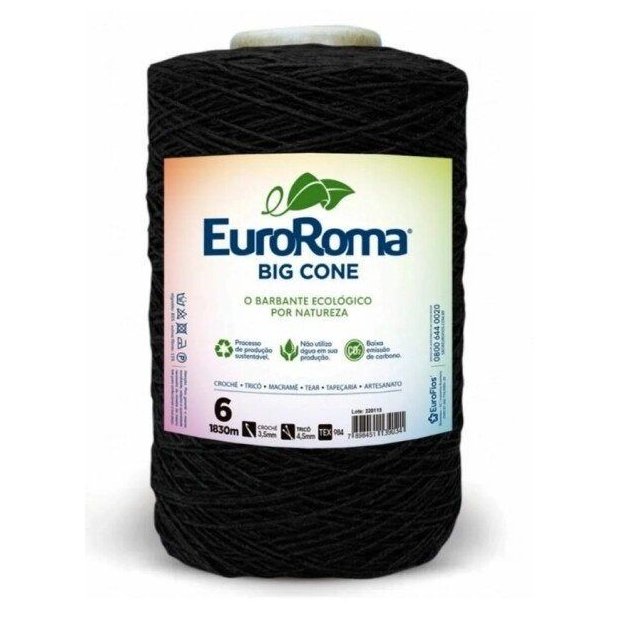 KIT 3 Barbante nº6 c/ 1,8kg EuroRoma - Preto