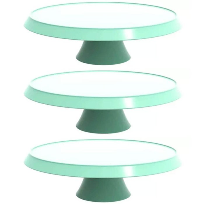 Kit 3 Bases Porta Bolos Verde Menta 30cm com Pé Bubble Suporte para Tortas Doces Crippa Verde Menta