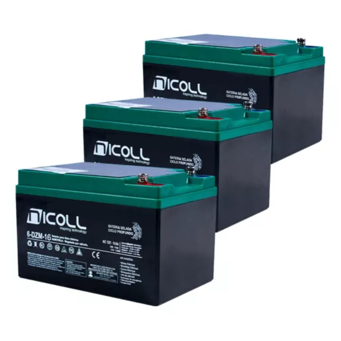 Kit 3 Bateria Selada Recarregavel Nicoll 12v 16ah 6-dzm-16 para Bicicleta e Veículo Elétrico