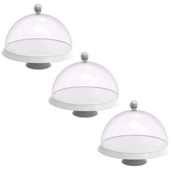 Kit 3 Boleiras Pratos para Bolo com Pé e Tampa 30cm Branco Plástico Crippa.