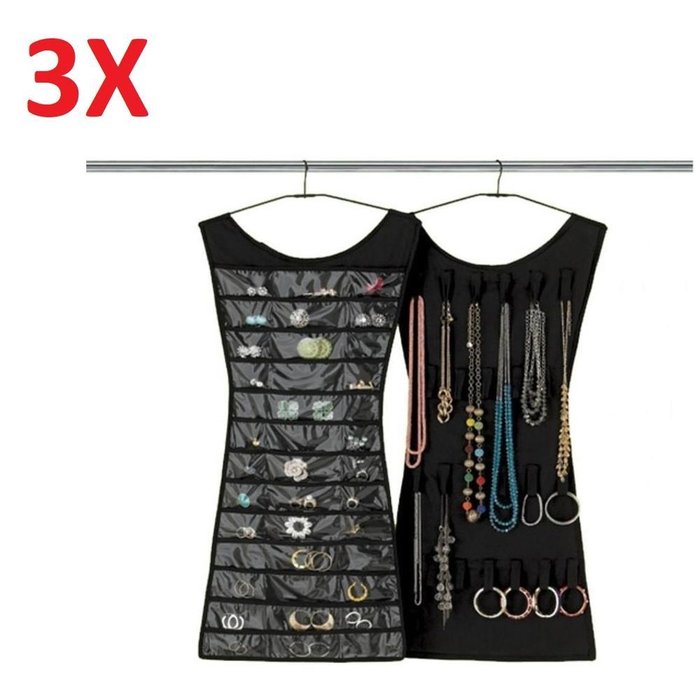 KIT 3 CABIDE ORGANIZADOR DE BIJUTERIAS PORTA JOIAS DE GUARDA ROUPA 2 EM 1 PARA COLARES
