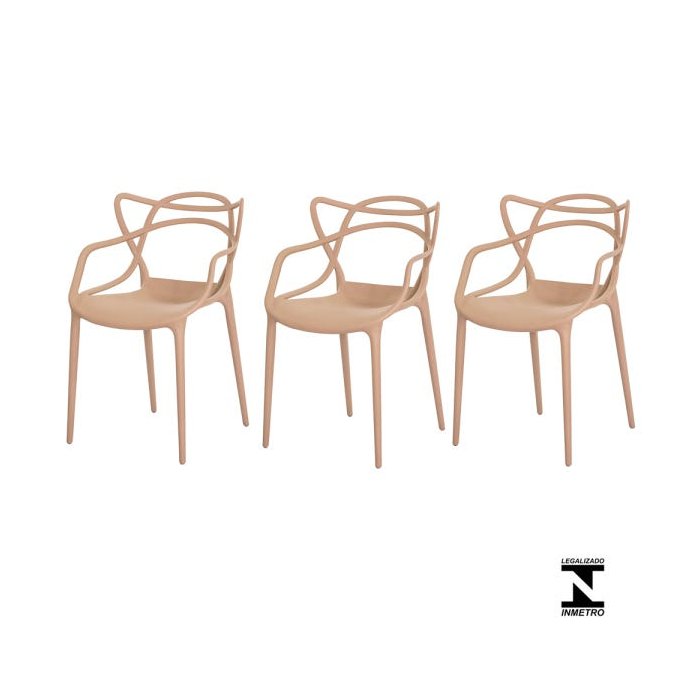 Kit 3 Cadeiras Allegra Nude Sala Cozinha Jantar Nude