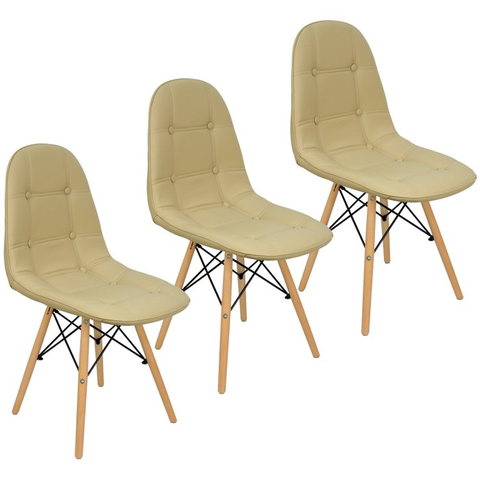 Ver imagem 1 de Kit 3 Cadeiras Charles Eames Botonê Eiffel Estofada Bege