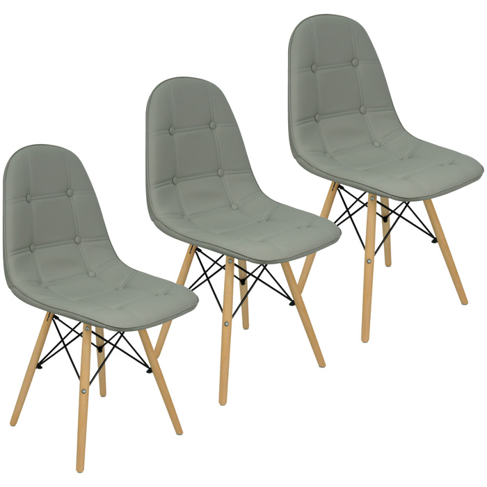 Kit 3 Cadeiras Charles Eames Botonê Eiffel Wood Estofada Couro Cinza