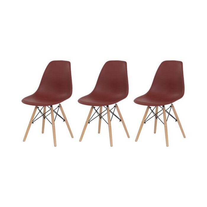 Kit 3 Cadeiras Charles Eames Eiffel Terracota Base Madeira Sala Cozinha Jantar VERMELHO QUEIMADO