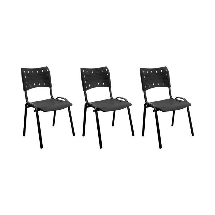 Kit 3 Cadeiras De Recepção Preta Bp