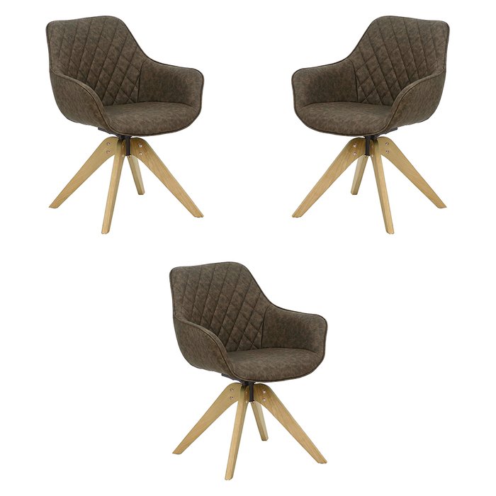 Kit 3 Cadeiras Decorativas Berkeley Pu Matelassê Sala de Jantar Base Giratória Madeira Café G56 - Gr