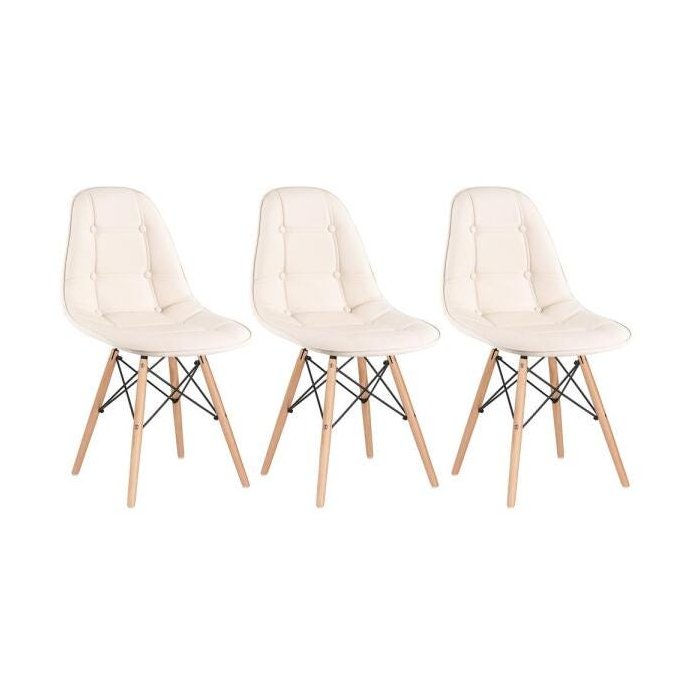 Kit 3 Cadeiras Eames Eiffel Botonê - Creme - Base de Madeira Clara