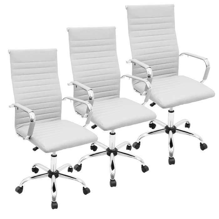 Kit 3 Cadeiras Eames Esteirinha Presidente Escritório Boston Eames Alta - Branca Branco