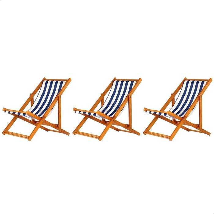 Kit 3 Cadeiras Espreguiçadeira Preguiçosa Dobrável sem Braço Mel Móveis Brasil Listrado Azul e Branc
