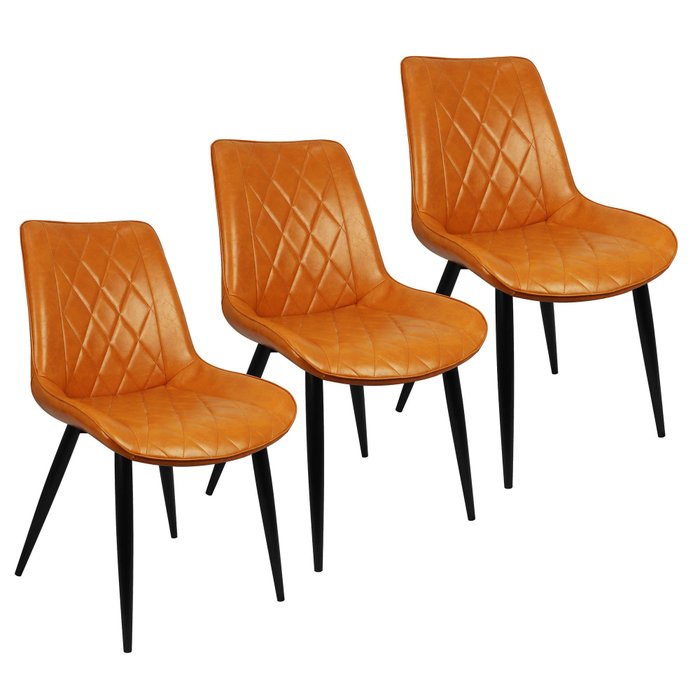 Kit 3 Cadeiras Haifa Livia Tábata Poltrona Estofada Pu Vintage Retro Pés Preto - Caramelo