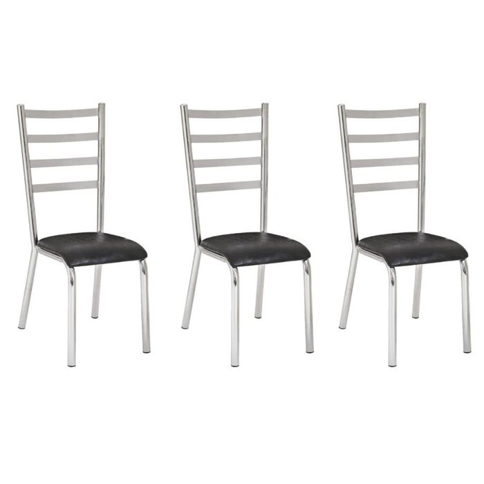Kit 3 cadeiras Laura cromada para cozinha-assento preto