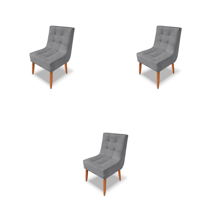 Kit 3 Cadeiras Luxo Trida para Sala de Jantar – Suede Premium, Design Moderno Cinza