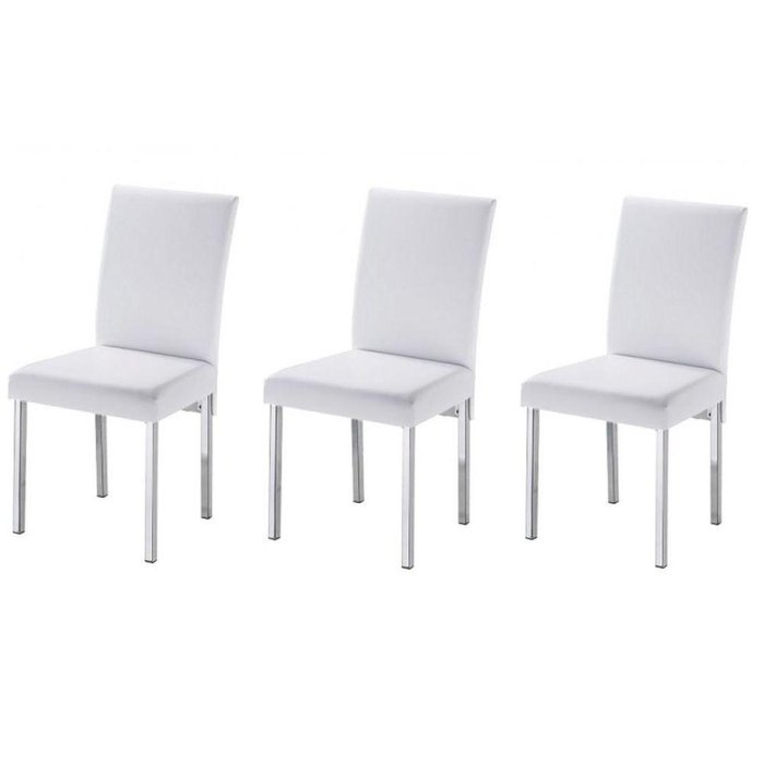 Kit 3 Cadeiras para Sala de Jantar-assento Sintético Branco Branco