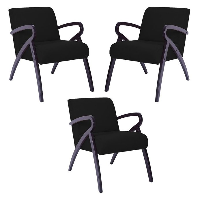 Kit 3 Cadeiras Poltrona Decorativa Juliette Preto Daime