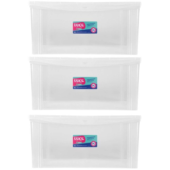 Kit 3 Caixas Máxi Organizadoras 65l Tampa com Trava Radical Incolor Multiuso