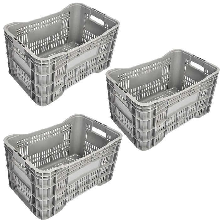 Kit 3 Caixas Plástica Hortifruti Empilhável A-60 Cinza JR