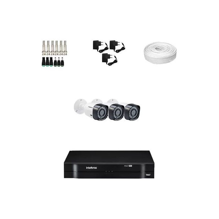 KIT DVR Intelbras + 3 Câmeras VHD 1120 B G4 + Acessórios