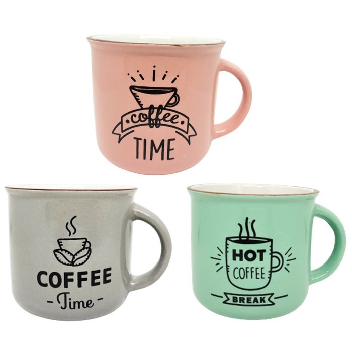 Kit 3 Canecas Cerâmica Coffee Soft Premium Grande Colorida 350ml - Fratelli