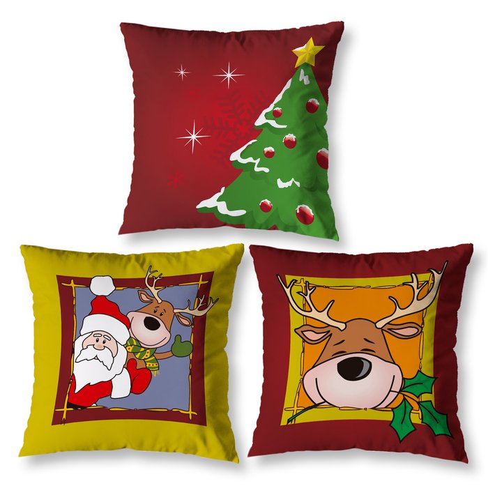 Kit 3 Capas de Almofada Natalinas Estampada Digital Zíper Invisível Decorativa Sala Quarto Sofá 40cm