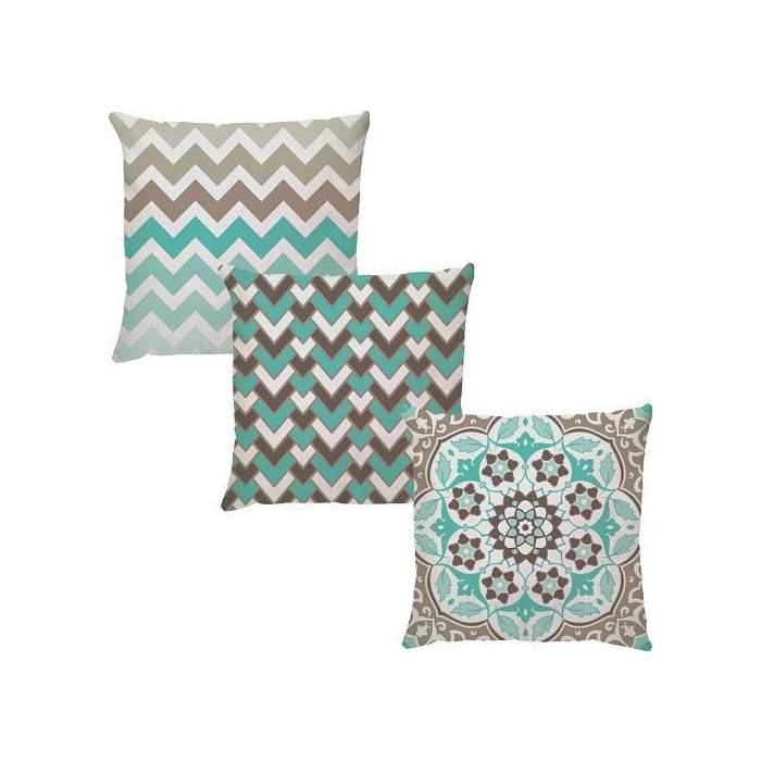 Kit 3 Capas de Almofadas Vector Turquesa Bege