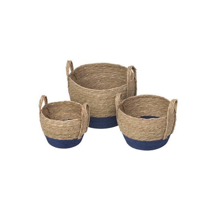 Kit 3 Cestos Nang em Fibra Natural com Marinho