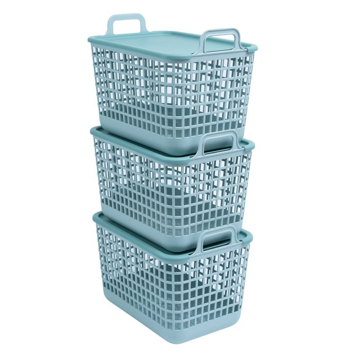 Kit 3 cestos telados com tampa de plástico 15l verde – Oikos
