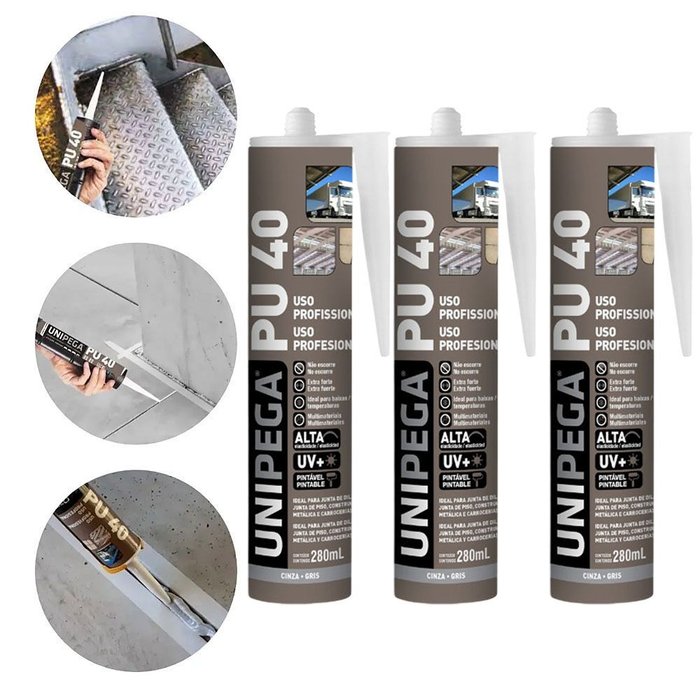 Kit 3 Cola Selante Pu40 Poliuretano Cinza 400g Profissional Adesivo Vedação Alta Resistência Madeira