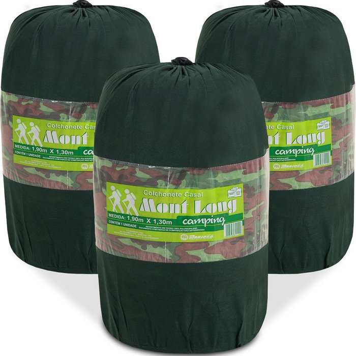 Kit 3 Colchonetes Camuflado Casal 190x130cm com Bolsa Para Transporte - Emcompre Verde