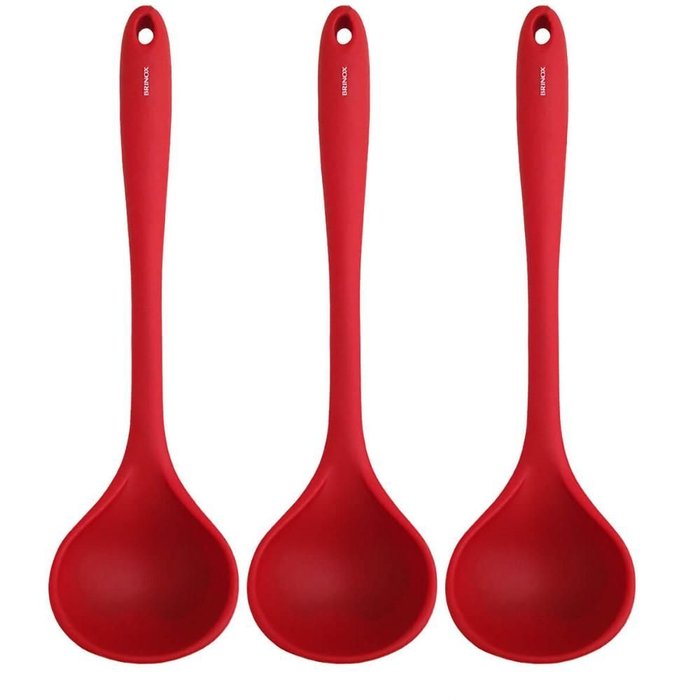Kit 3 Conchas Silicone Vermelha 27cm Servir Feijão Colher Brinox Utensílios Cozinha