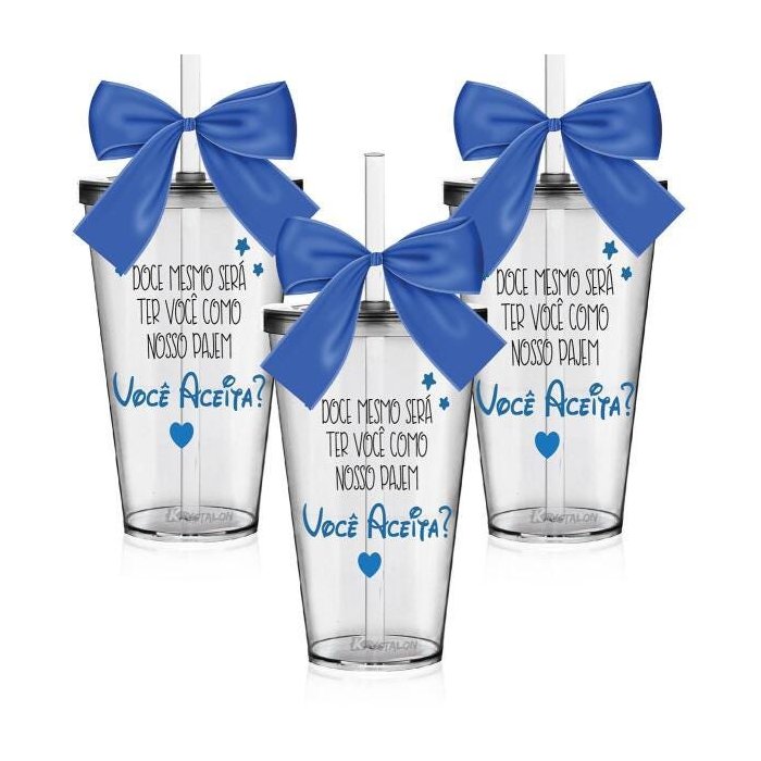 Os Copos Convite são uma forma linda e deliciosa de convidar ou agradecer os pequenos por participarem de uma data tão única Com capacidade de 550 ml, você tem a opção de encher os copos com todo tipo de doce e assim encantar os futuros Pajens O sim deles será GARANTIDO Personalize também do seu Jeito