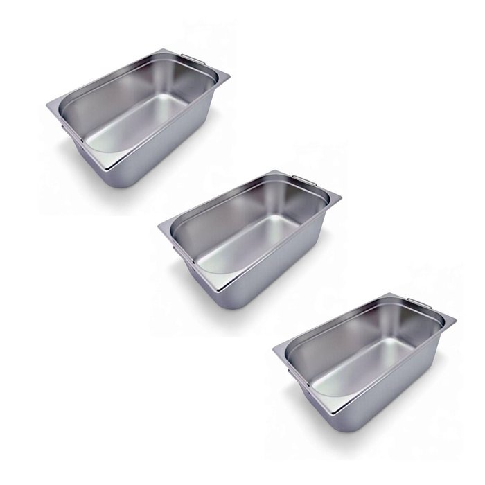 Kit 3 Cubas Gastronômica Inox Gn 1/1 200mm com Alça Prateada