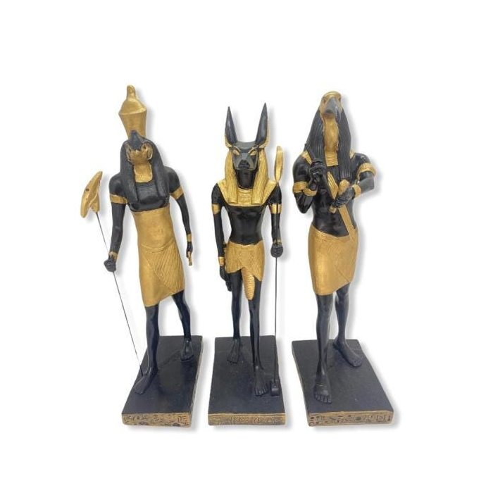 Kit 3 deuses egípcios Anubis, Horus e Thot em Resina