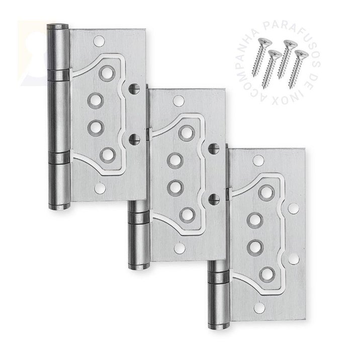 - 03 DOBRADIÇAS SOBREPOR INOX24 PARAFUSOS