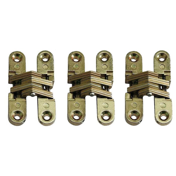 Kit 3 Dobradiças Invisíveis 70mm Cruz para Portas Interna Dourado