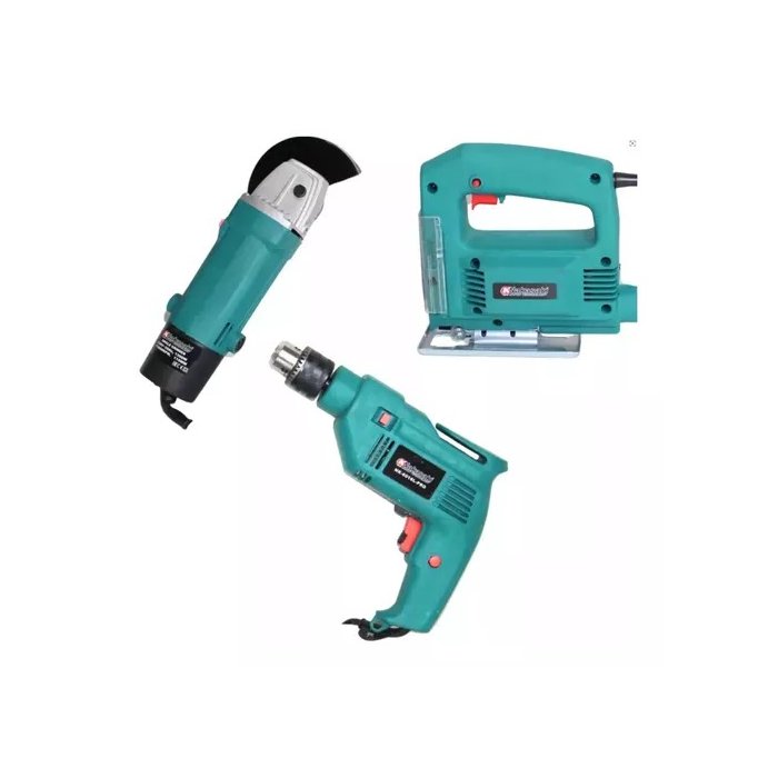 Esse kit 3 em 1 é uma solução completa para suas necessidades de perfuração, corte e acabamento em diversas superfícies. Composto por uma furadeira elétrica, uma esmerilhadeira e uma serra tico-tico, este conjunto é ideal para projetos de bricolagem ou uso profissional.A furadeira oferece potência e precisão, permitindo perfurações eficientes em madeira, metal ou concreto.A esmerilhadeira é perfeita para desbastar e cortar metais, enquanto a serra tico-tico facilita cortes em precisos em madeira e outros materiais. Com ferramentas compactas e ergonômicas, o kit proporciona versatilidade, potência e facilidade de uso, tudo embalado em uma prática maleta para transporte e armazenamento seguro.CONTEÚDO DA EMBALAGEM- 1x furadeira elétrica (500W)- 1x esmerilhadeira angular (100mm, 500W)- 1x serra tico-tico (400W)- 1x maleta de transporte- 1x disco de desbaste- 10 brocas (madeira, metal e concreto)- 5x pontas de chave- 1x fita métrica de 2 metros- 1x par de luvas de proteção- 1x chave de ajuste- 1x conjunto de pedras para afiar