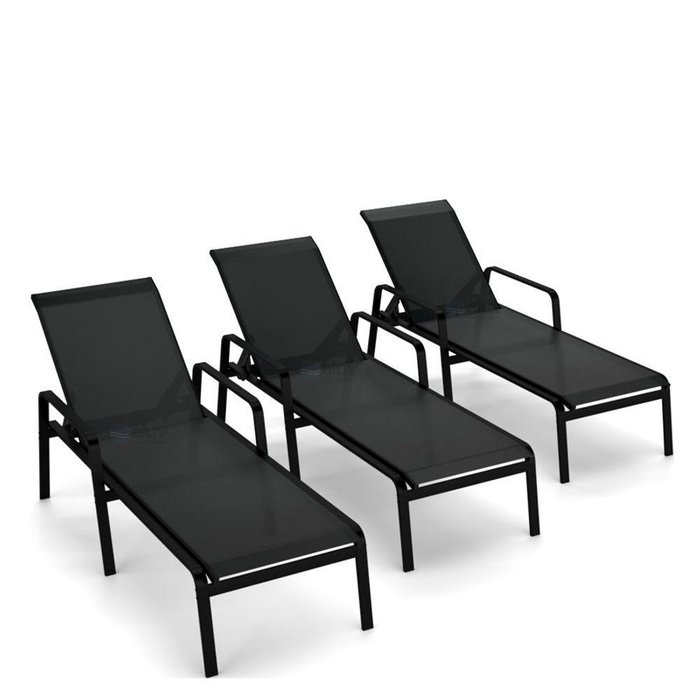 Kit 3 Espreguiçadeira Piscina Alumínio Preto Tela Preto Preto