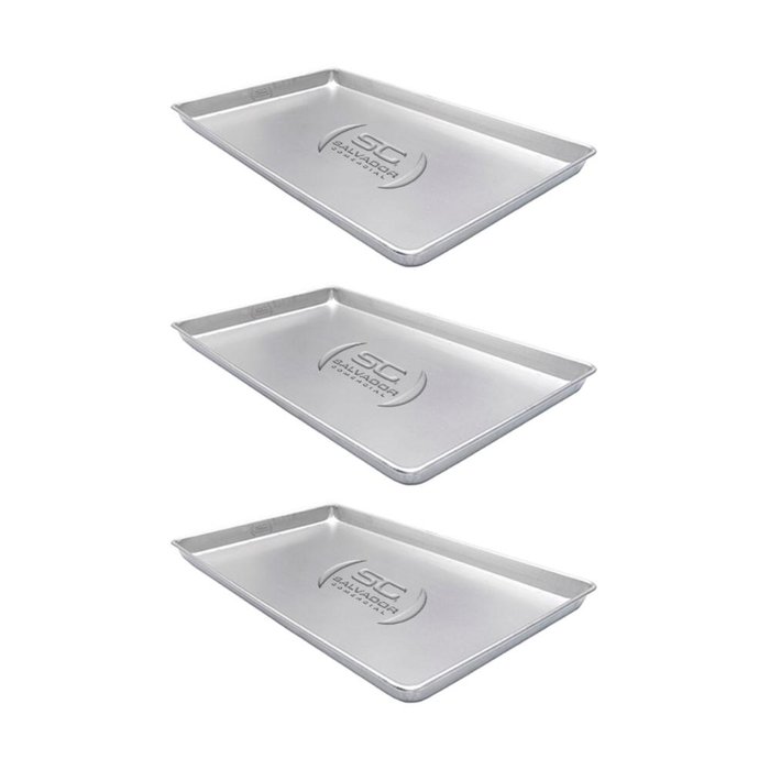 KIT - 3 Formas Assadeiras Lisa Estampada 0,6mm Pão Doce Alumínio 58 x 70 x 3,5 - Imeca Prata