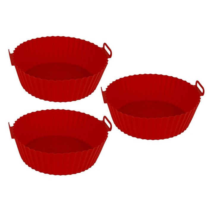 Kit 3 Formas Silicone Fritadeira Redonda Airfryer 16cm Vermelho escuro