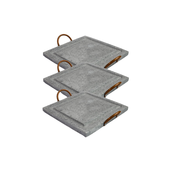 03 Grelhas Para Carnes Servir Porção em Pedra Sabão P 20x20cm.