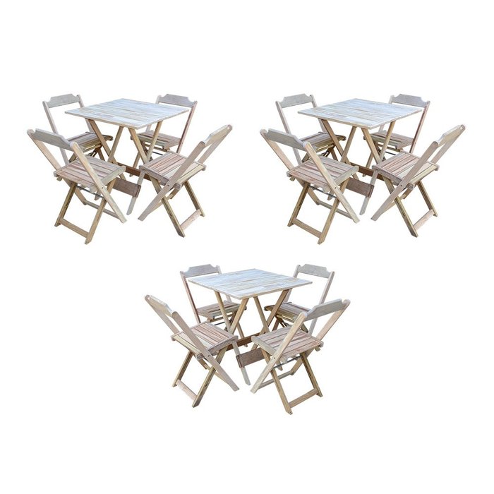 Kit 3 Jogos de Mesa Dobravel com 4 Cadeiras de Madeira 70x70 para Restaurante e Bar - sem Pintura