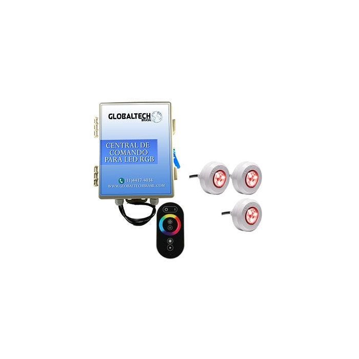 Kit 3 leds coloridos para piscina com central e touch