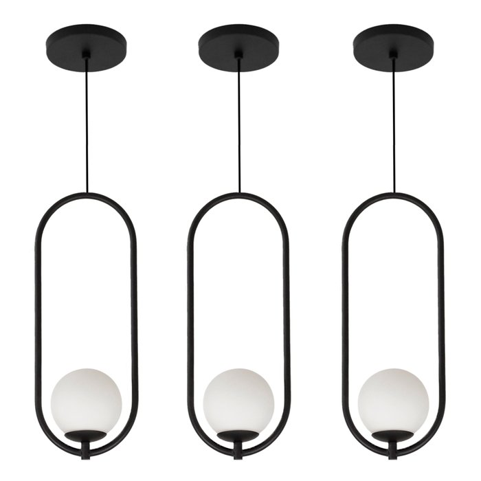 Kit 3 Luminária Pendente Teto Lustre Arco Globo Quarto Preto Preto